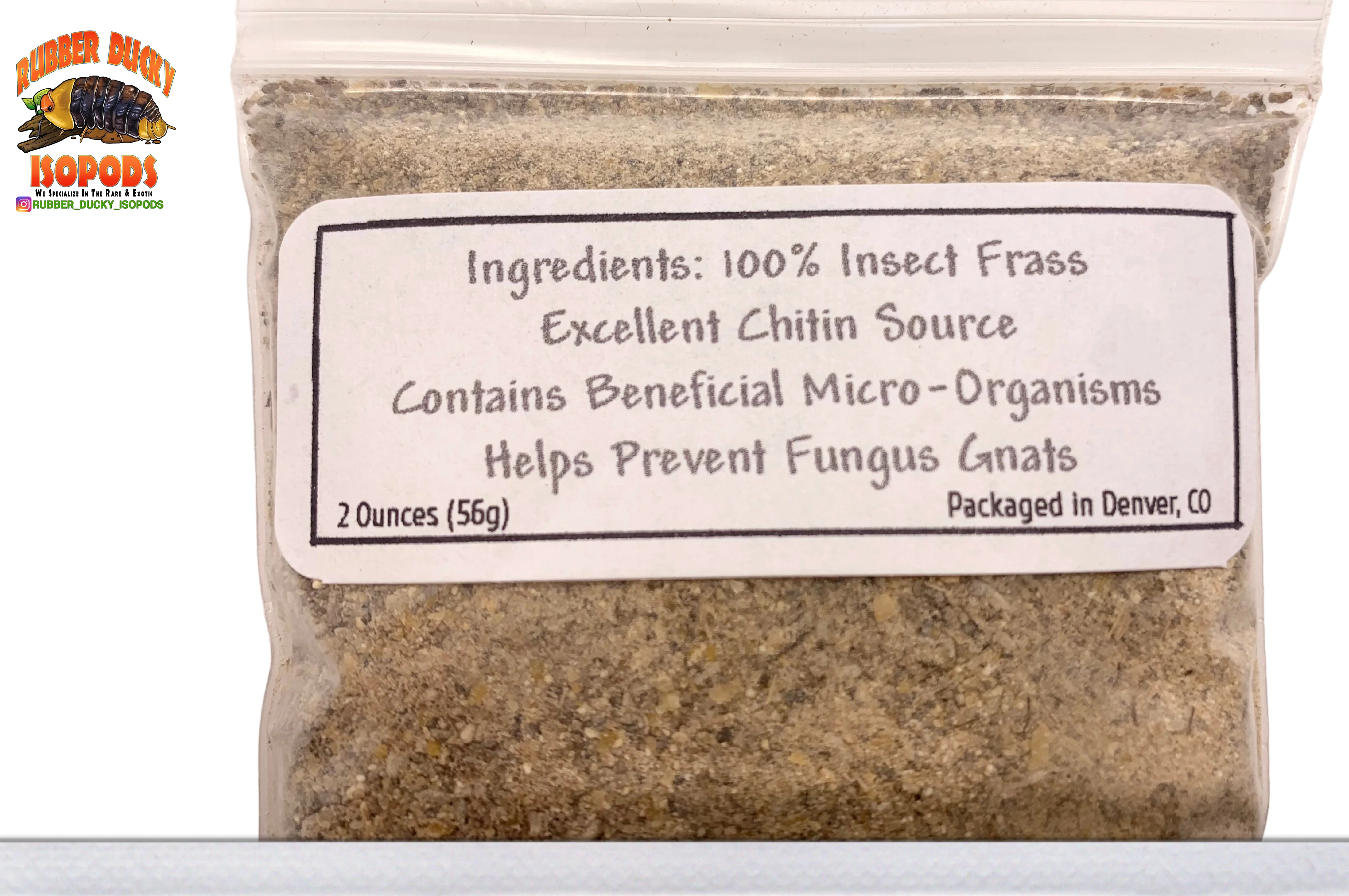 100% Chitin Heavy "Out The A** Insect Frass," offers the Isopod breeder the ability to be a preventive and proactive breeder. We have found here at RubberDuckyIsopods.com that the focus for us is to find ways to combat Mother Nature by using Mother Nature to cure these issues.